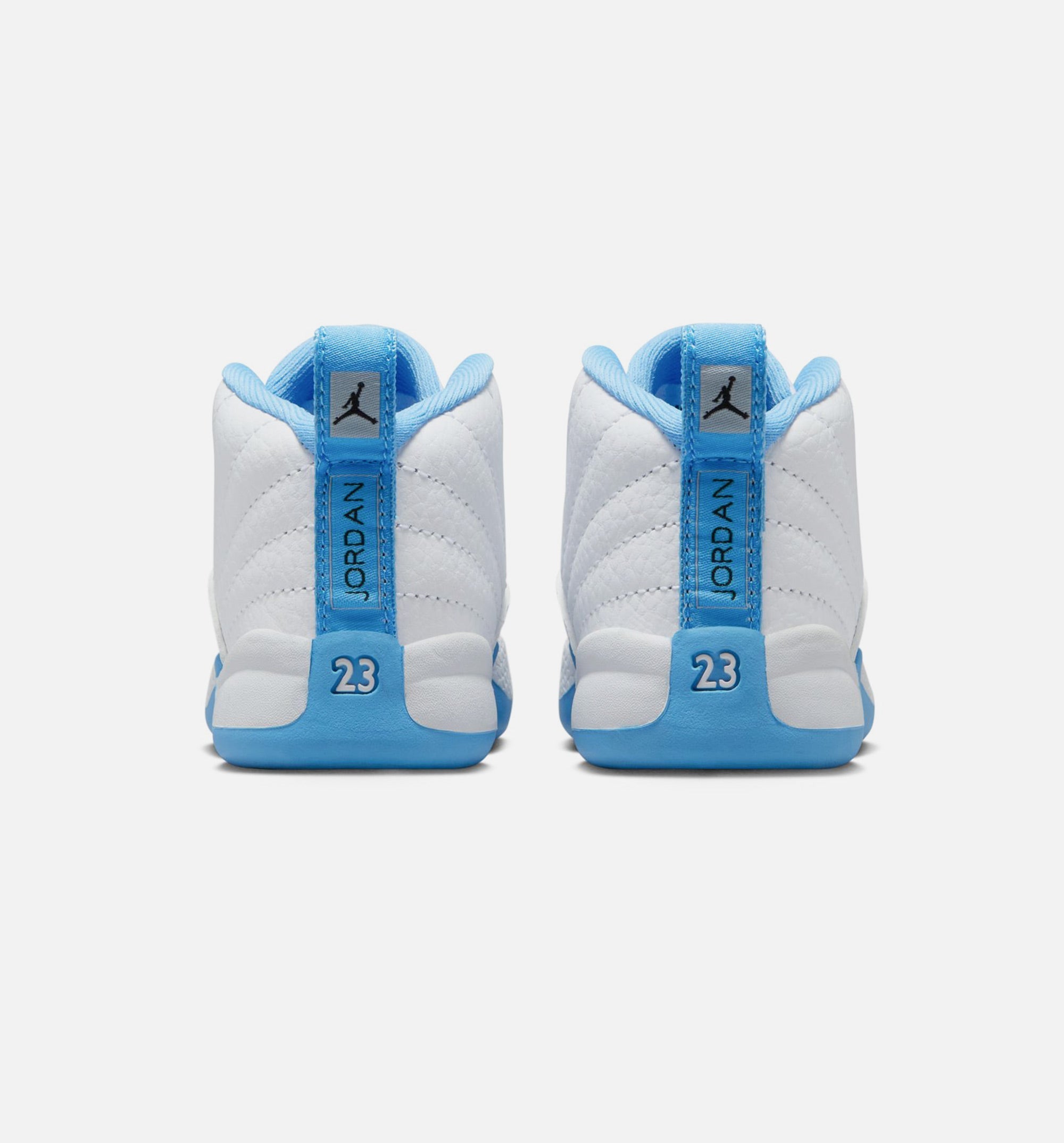 Air Jordan 12 Retro White and University Blue Infant Toddler Lifestyle Shoe - White/University Blue/Metallic Silver Free Shipping